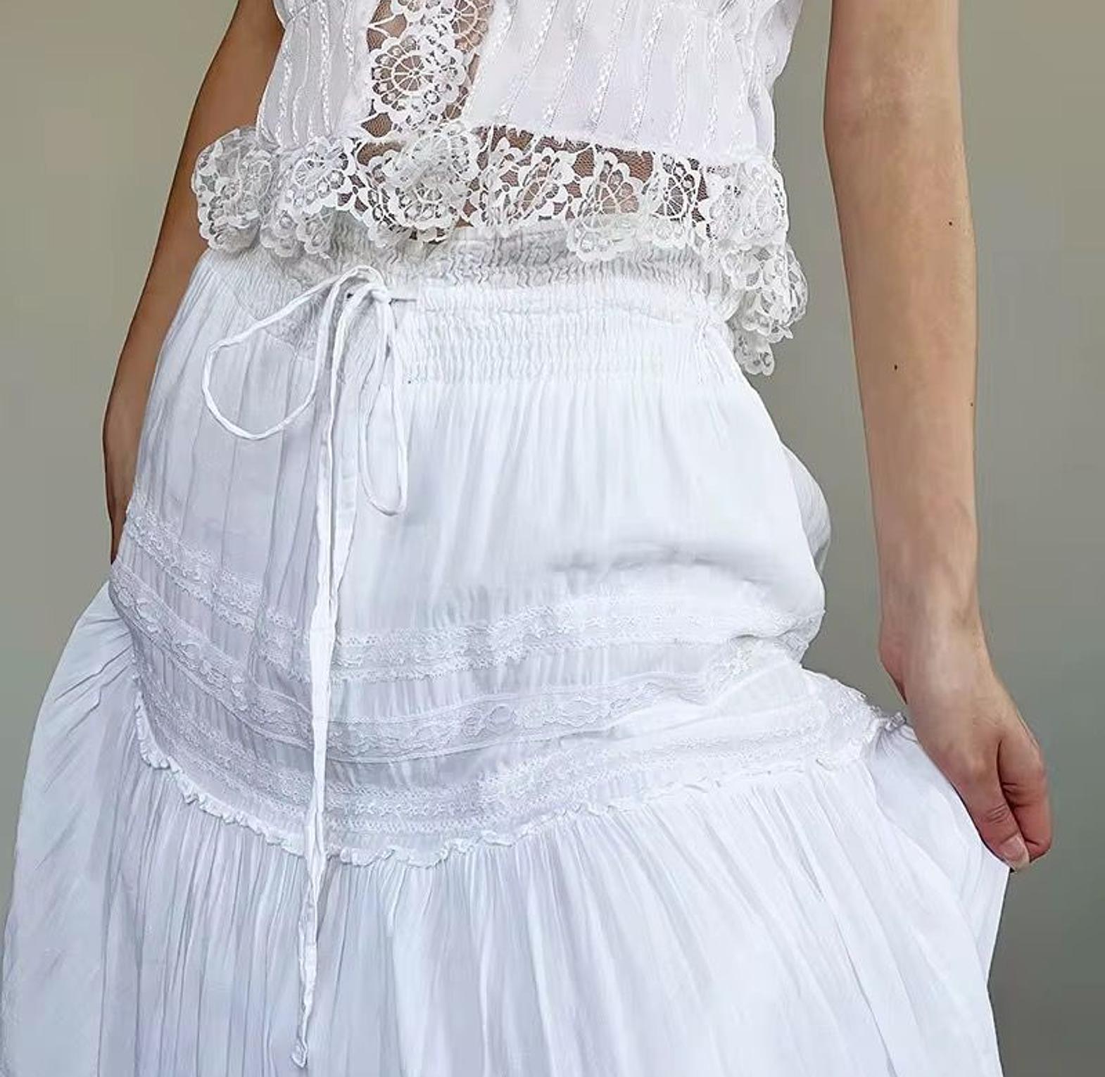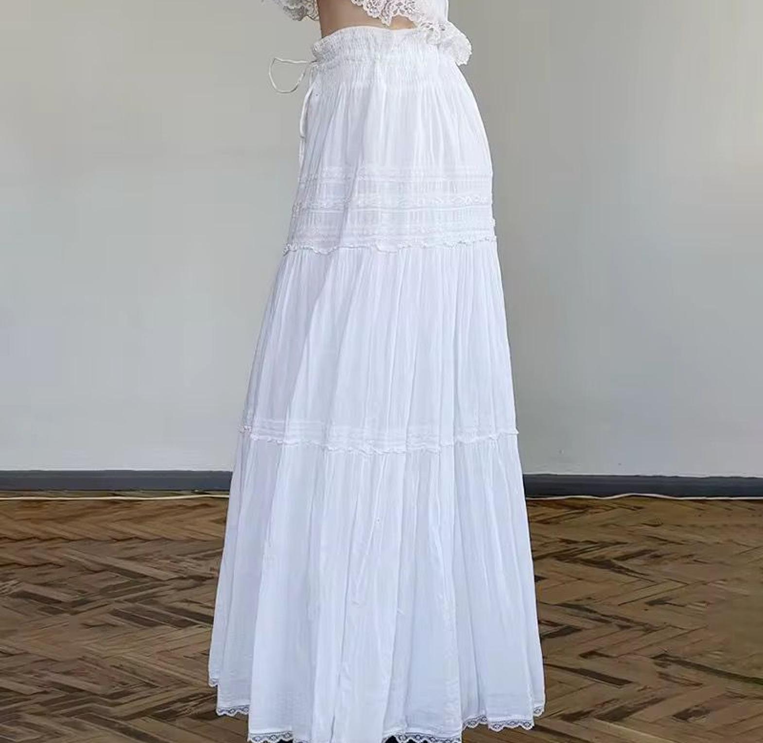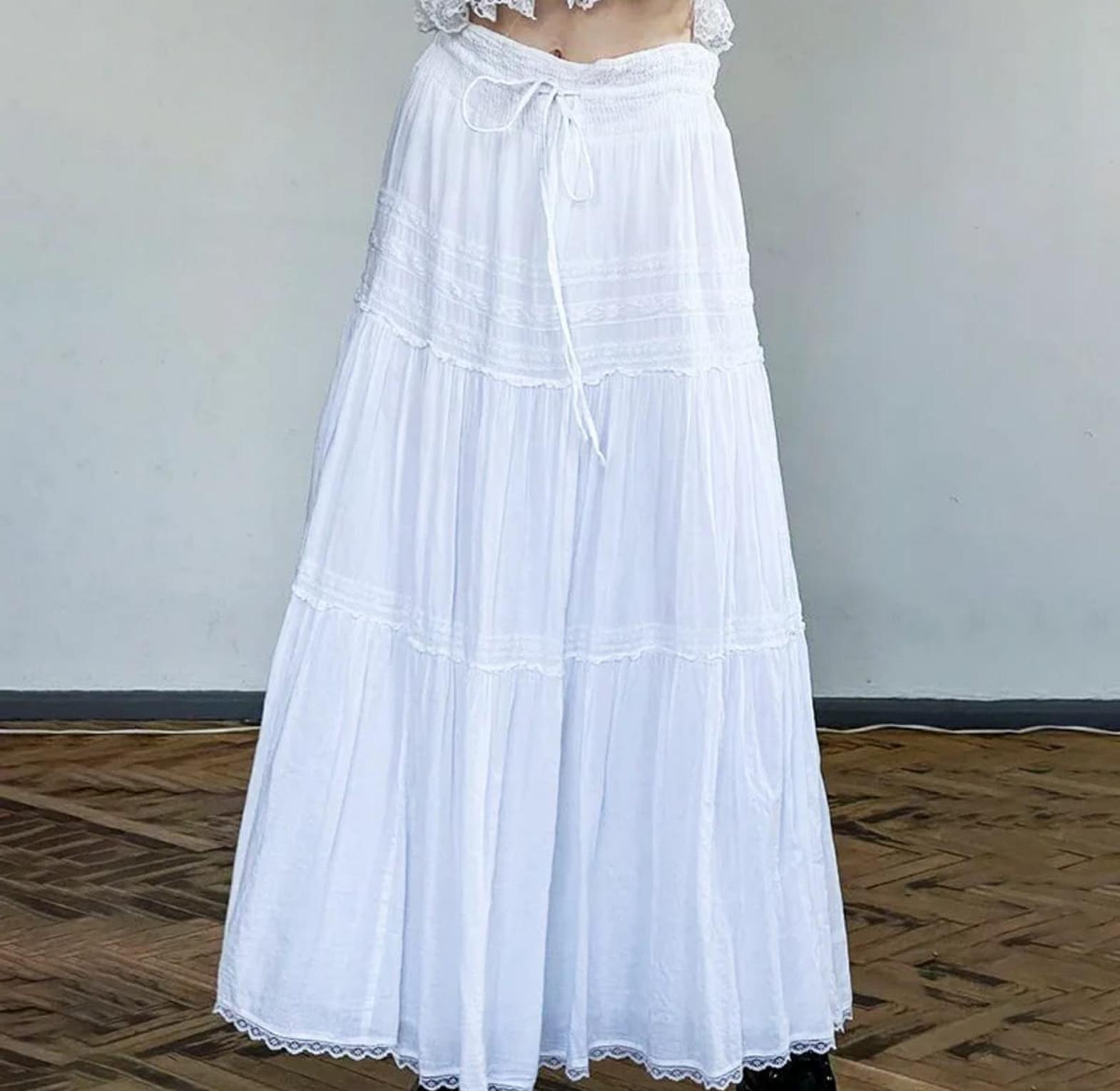 float through your day in effortless grace with this white tiered boho maxi skirt