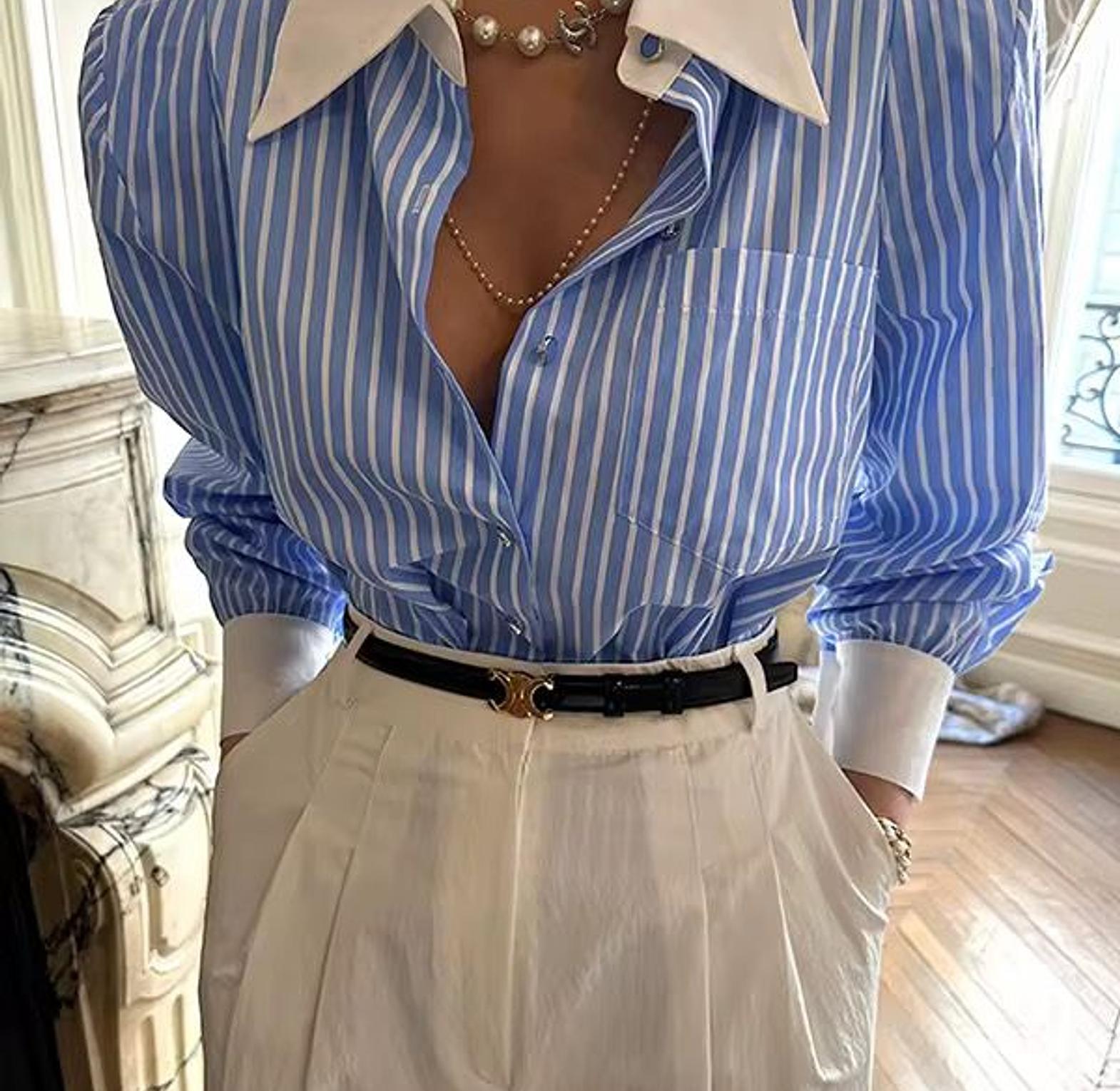 The Draped Striped Shirt is a stylish and versatile piece that combines comfort and fashion in one. Featuring a flattering draped design and bold striped pattern, this shirt offers a relaxed yet polished fit. Crafted from breathable fabric, it provides all-day comfort while making a statement with its modern, sleek look. Whether paired with jeans for a casual outing or tucked into a skirt for a more refined look, this shirt is an essential addition to any wardrobe.