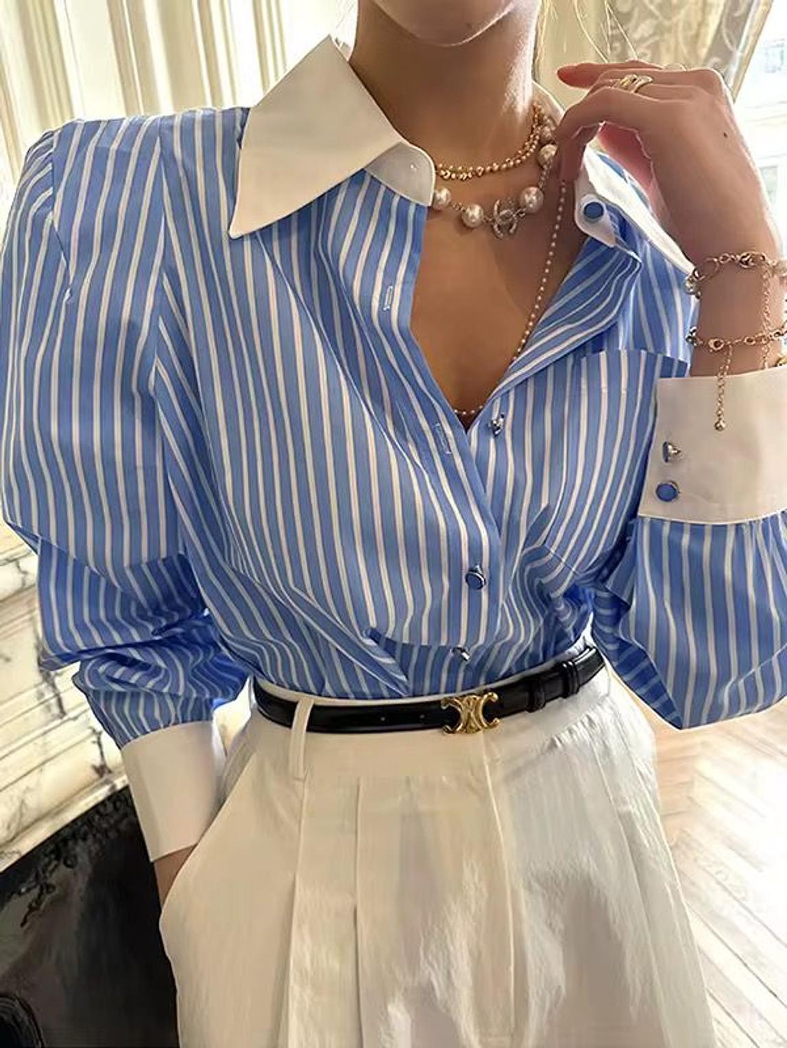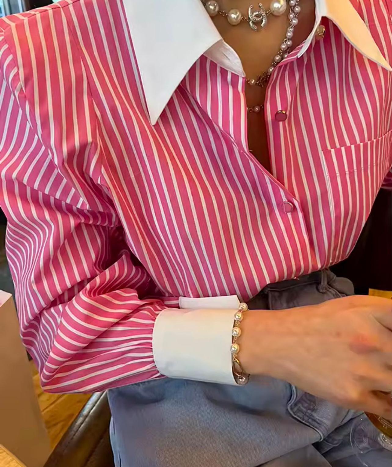 The Draped Striped Shirt is a stylish and versatile piece that combines comfort and fashion in one. Featuring a flattering draped design and bold striped pattern, this shirt offers a relaxed yet polished fit. Crafted from breathable fabric, it provides all-day comfort while making a statement with its modern, sleek look. Whether paired with jeans for a casual outing or tucked into a skirt for a more refined look, this shirt is an essential addition to any wardrobe.